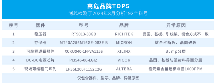 为了使更多客户了解异常物料信息,创芯检测对外发布元器件异常品质分析报告,希望能帮助您预警风险,确保安心购物,避免购买不合格器件。