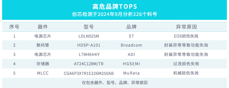 为了使更多客户了解异常物料信息,创芯检测对外发布元器件异常品质分析报告,希望能帮助您预警风险,确保安心购物,避免购买不合格器件。
