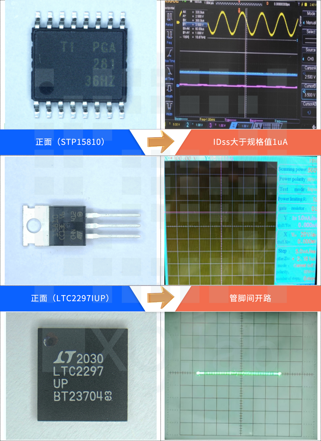 功能检测是指在特定工作条件(即器件正常使用环境,通常为常温),器件正常工作的状态下,进行各种必要的逻辑或信号状态测试。此测试依据原厂规格书以及行业标准或规范,设计可行性测试向量或专用测试电路,对检测样片施加相应的信号源输入,通过外围电路的调节控制、信号放大或转换匹配等特定条件,分析信号的逻辑关系及输出波形的变化状态,检测电子元器件的功能特性。