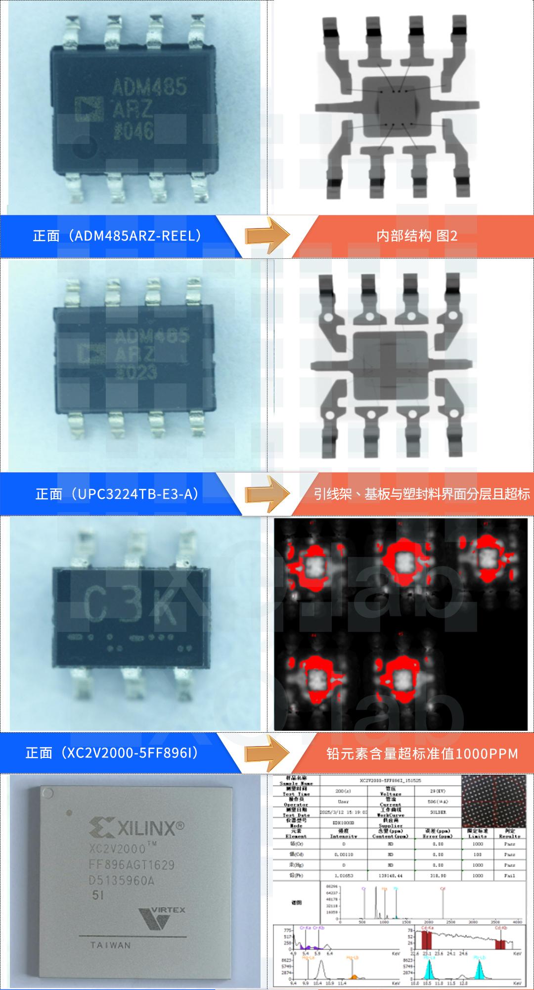 为了使更多客户了解异常物料信息,创芯检测对外发布元器件异常品质分析报告,希望能帮助您预警风险,确保安心购物,避免购买不合格器件。 本次对外公布为2025年2月实验室所拦截的高风险及高危物料。