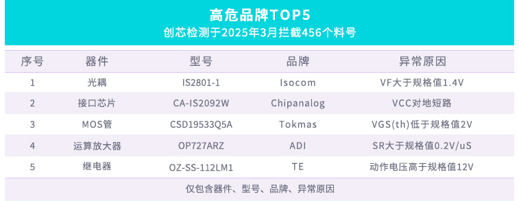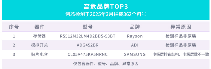 创芯检测 | 3月元器件异常物料检测拦截报告
