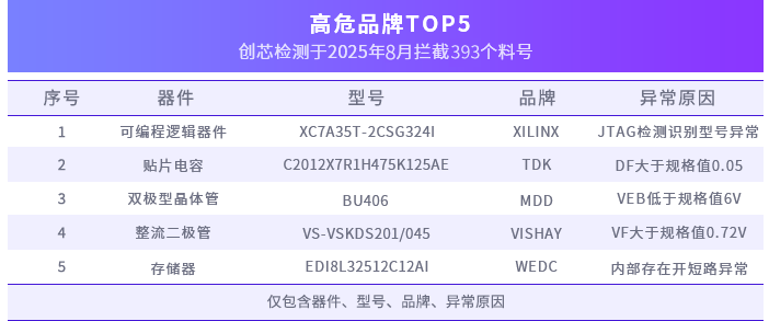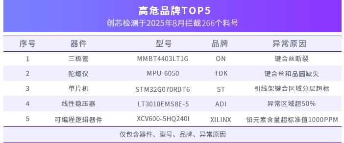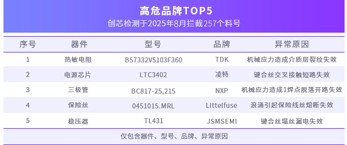 创芯检测 | 8月元器件检测异常分析报告